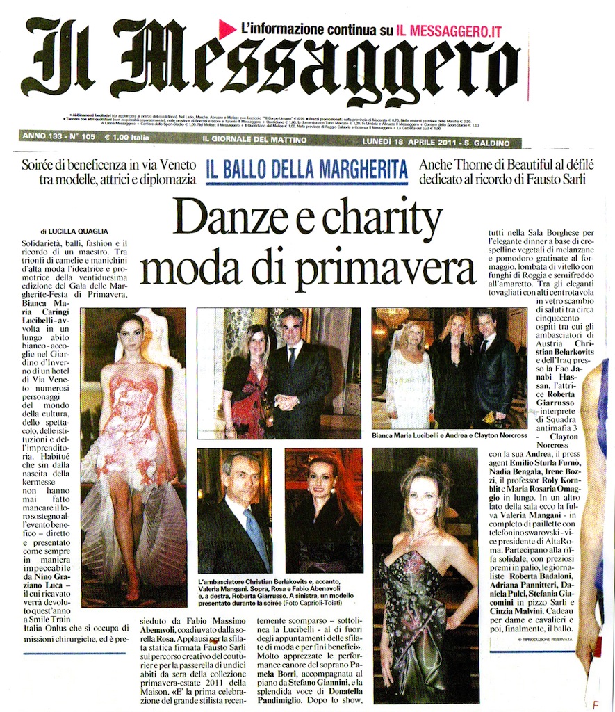 Rassegna Stampa 2011 23 venerdì Dic 2011 Posted by Biancanaria Caringi Lucibelli in 2011, Rassegna Stampa ≈ Lascia un commento Articolo da Il Messaggero Gala delle Margherite 2011 Articolo da Il Messaggero Gala delle Margherite 2011 Condividi :Tweet Invia un link a un amico via e-mail (Si apre in una nuova finestra) E-mail Stampa (Si apre in una nuova finestra) Stampa Condividi su WhatsApp (Si apre in una nuova finestra) WhatsApp Mi piace Caricamento... Correlati